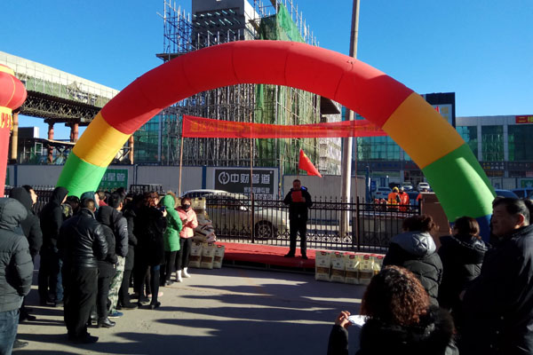 1月15日上午10點(diǎn),通達(dá)建材市場(chǎng)新春慰問商戶活動(dòng)儀式,在建材市場(chǎng)院內(nèi)舉行。公司總裁辦公會(huì)成員,及市場(chǎng)相關(guān)負(fù)責(zé)人參加了此次活動(dòng)儀式。來自市場(chǎng)內(nèi)的全體商戶應(yīng)邀參加了活動(dòng)儀式。雖然氣溫已低至零下20度,但卻絲毫沒有阻礙前來參加活動(dòng)的商戶熱情,活動(dòng)在歡快祥和的氛圍中進(jìn)行,讓商戶享受到通達(dá)這個(gè)大家庭的關(guān)愛與溫暖。
