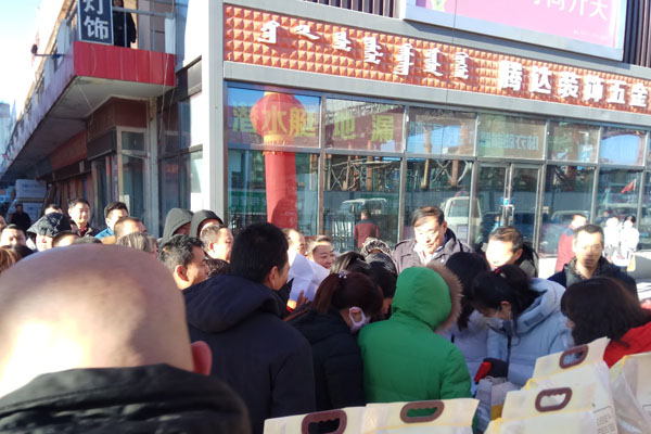 隨后建材市場(chǎng)總經(jīng)理王江宣布慰問活動(dòng)正式開始,商戶們井然有序地現(xiàn)場(chǎng)排隊(duì)領(lǐng)取慰問金及大米。