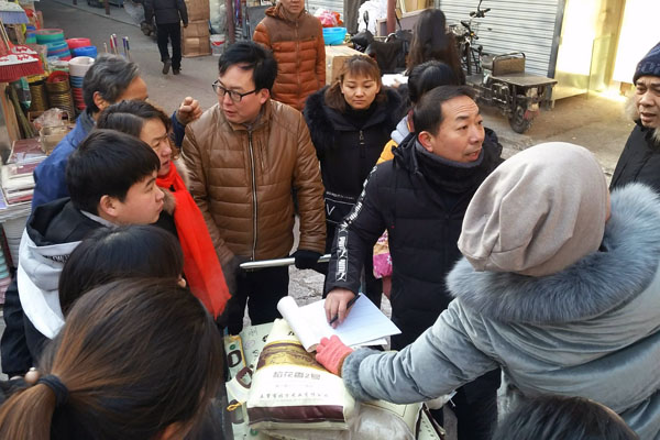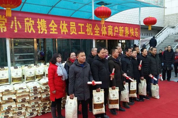 儀式結(jié)束后,所有商戶,工作人員盡然有序的離場(chǎng),由經(jīng)營發(fā)展部門和環(huán)境服務(wù)部同事共同分成四個(gè)小組逐一將大米送到每家每戶